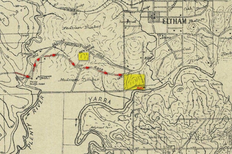 She was proceeding to Kangaroo-ground(1)In this report her destination was Kangaroo Ground on the previous day, to visit her daughter, who is in service there, and feeling somewhat fatigued, she requested a “lift” from a wood-carter who was returning home. Her application was acceded to, and nothing particular occurred until they had passed the Lower Plenty tollgate(2)Lower Plenty, in earlier times part of Eltham, almost certainly got its name from the Lower Plenty Toll Bridge, built in 1860 to collect tolls across the Plenty River., by which time night had set in. The man then commenced making improper overtures to her, which she indignantly rejected; but when they arrived at a part of the road known as the Sandhill, which is far removed from any habitation, and little frequented after sunset, he committed a serious offence upon her.(3)There are no locations with that name, or nickname in common use (locally) today. Taking into consideration the main route between Lower Plenty and Eltham at that time was Old Eltham Road, my theory is “Hohnes Hill” is a probable location (local history of the name Hohne, or Hohnes can not be verified at time of writing). The theory of this location is supported in News Report #2. Another possibility is “Rosehill” Road which extended to the back of Lower Eltham park. That section (now Homestead Rd. and previously named Banoon) may have been known as Rosehill Rd. ? There is also a hill, outlined on the contour map attached, which is now known as Panorama Avenue, which is another possible location. Where the assault took place is speculation without knowing how she arrived at Mr Batts. She was ignorant of the name of the man, and could give but a very bare account of his appearance; but from her description of the horses, Senior-constable Lawlor was led to suspect a man named Peter Carncan(4)Probably a typo; “Carrucan”, who has been living in the township for a number of years. Obtaining a warrant, he arrested him on the same day, and confronting him with the woman she at once identified him, and he then acknowledged to his being the person who had driven her, but denied having committed the offence charged against him. A special court will be held to try the case upon the return of the police-magistrate, who is temporarily absent upon duty from the district. Mrs. Ardley is the mother of ten children(5)This report “mother of ten, and bears an unimpeachable character; and the prisoner is a married man, with a large family.